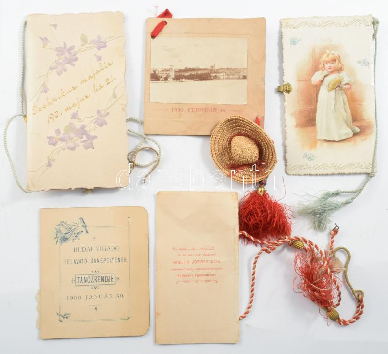 Beschreibung: cca 1900 Báli táncrendek, 5 db, közte sérült, hiányos, az egyiken mini szalmakalappal