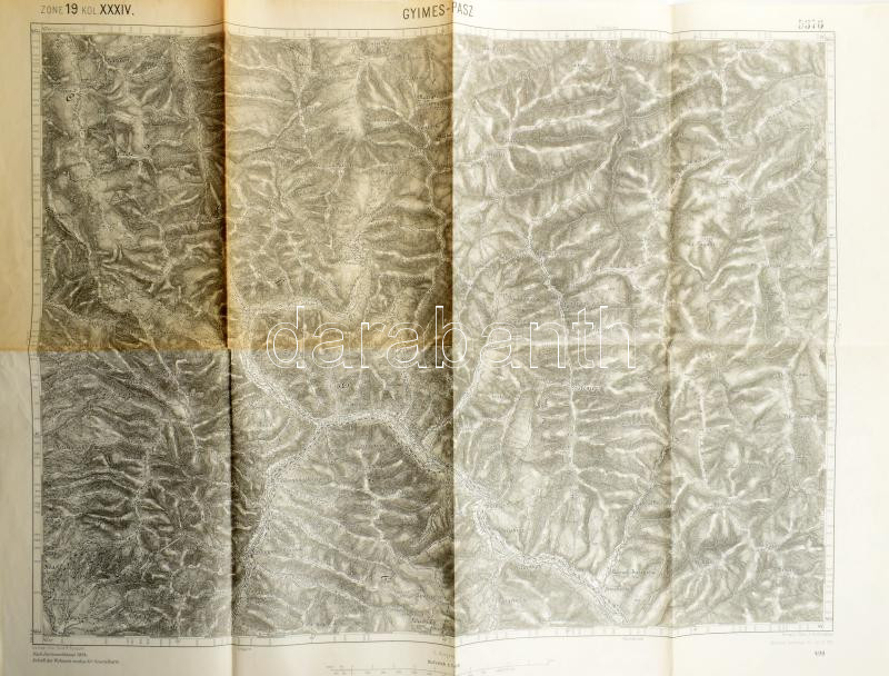 1915 A Gyimesi-szoros (Gyimes-Pasz) környékének katonai térképe, 1 : 7... https://www.darabanth.com/de/514-Auktion-Philatelie-Postkarten-Numismatik-Kunstwerke-Bucher-Schreibwaren-Schmuck/515.0/Kunst-Dokumente-andere-Sammelgebiete/Landkarten~79/1915-A-Gyimesi-szoros-Gyimes-Pasz-kornyekenek-katonai-terkepe-1-75000-K-u-k-Militarg~II3481900