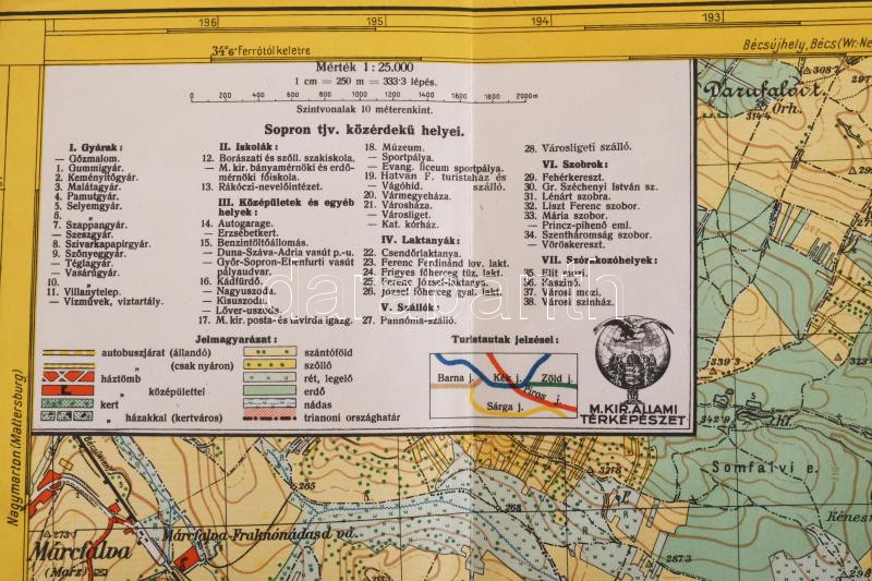 Beschreibung: 1931 Soproni hegység, Kirándulók térképe 14. sz., 1 : 25.000, Bp., M. Kir. Állami Térképészeti Intézet, 82x55 cm