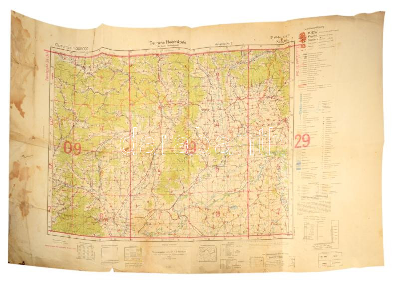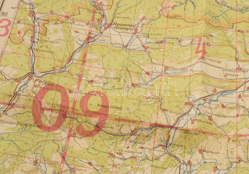 1944 Deutsche Heereskarte Ausgabe Nr. 2, Blatt Nr. R49, Kaschau / Kassa környékének II. világháborús katonai térképe, 1 : 300.000, foltos, viseltes állapotban, 50x74,5 cm