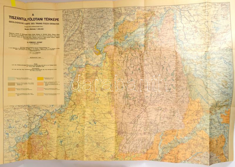 Sümeghy József: A Tiszántúl. Bp., 1944. M. Kir. Földtani Int. (Attila-Nyomda). III+[1]+208 p.+39 t. (Ebből . 2 színes térkép /960x360 és 1000x690 mm/, hajtogatva. Számos földtani szelvénnyel, metszettel. Külön tokban). /Magyar Tájak Földtani Leírása VI./ Kiadói papírborítókkal