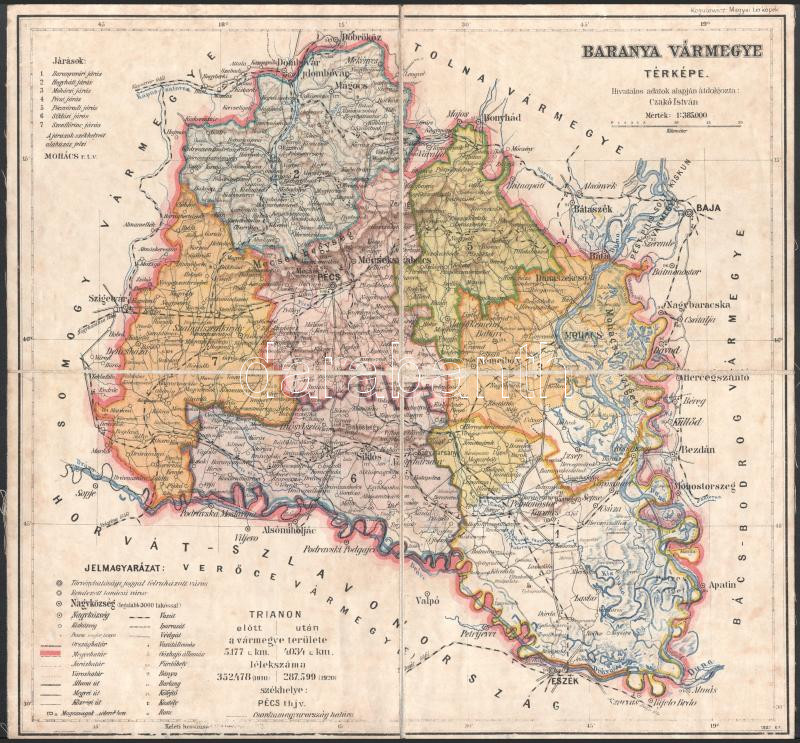 ca 1930 Baranya vármegye térképe, Czakó István, vászonra kasírozva. 32... https://www.darabanth.com/de/514-Auktion-Philatelie-Postkarten-Numismatik-Kunstwerke-Bucher-Schreibwaren-Schmuck/515.0/Kunst-Dokumente-andere-Sammelgebiete/Landkarten~79/ca-1930-Baranya-varmegye-terkepe-Czako-Istvan-vaszonra-kasirozva-32x32-cm~II3453247