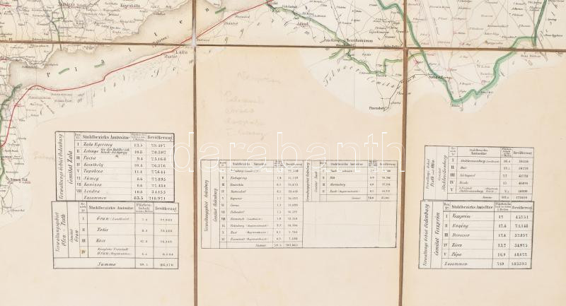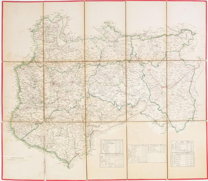 cca 1870-1890 Északnyugat-Magyarország (Balaton, Balaton-felvidék, Fertő-tó és környéke) térképe, Nagy-Magyarország térképből egyedileg, kézzel kivágva és vászonra kasírozva, 87,5x76 cm