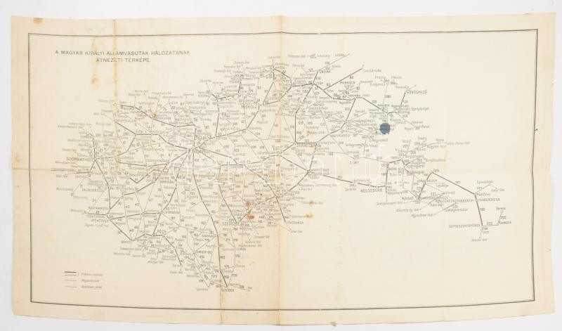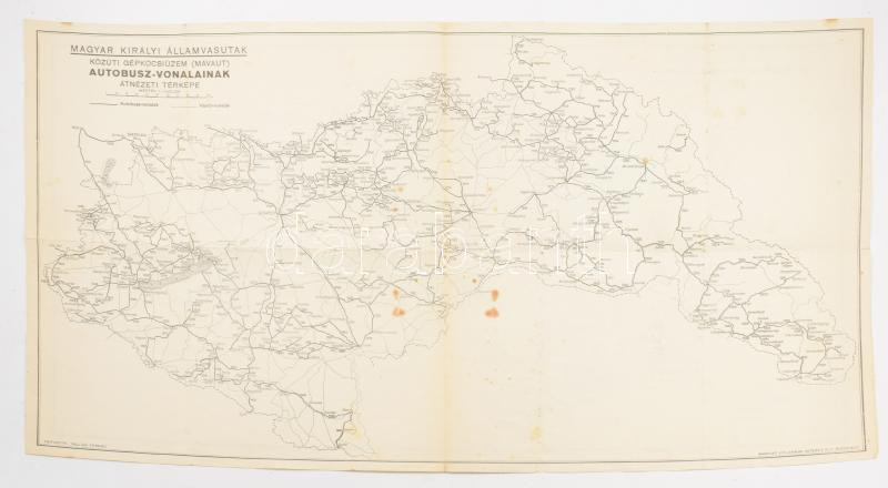 cca 1941 Magyar Királyi Államvasutak közúti gépkocsiüzem (MÁVAUT) autóbusz-vonalainak és vasúti hálózatának átnézeti térképe, kétoldalas térkép (rajta a visszatért felvidéki, kárpátaljai, erdélyi területekkel), tervezte: Tallián Ferenc, 1 : 400.000, Bp., Magyar Földrajzi Intézet R.T., kissé foltos, 33x59 cm