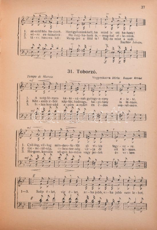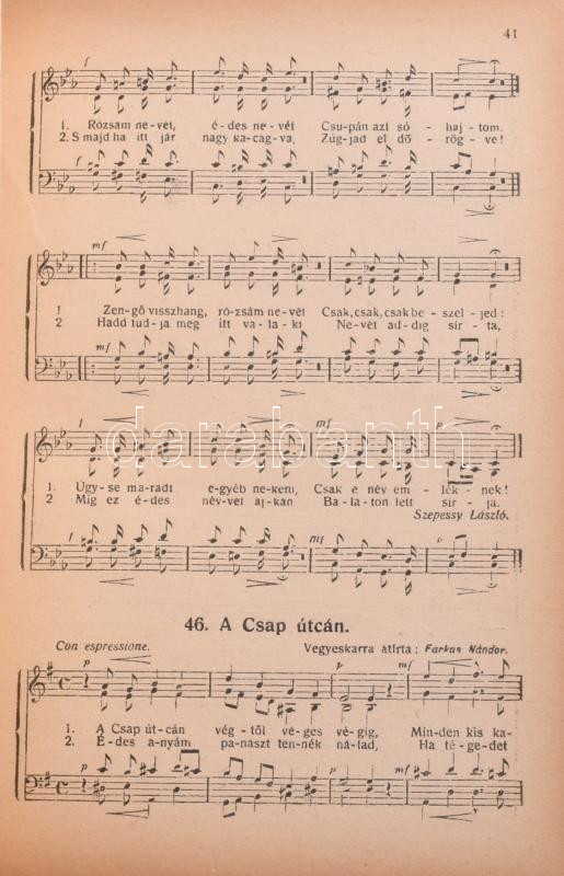 Buchner Antal (szerk.), Luspay Kálmán (szerk.), Régenhold János (szerk.) Turul daloskönyv I?II. kötet Vegyeskarra írott énekek gyűjteménye két kötetben. Negyvenhat szerző száz vegyeskara. Középiskolák részére kézikönyv gyanánt és énekkarok használatára. Eger, 1921?1928. Egri Nyomda Részvénytársaság. [12] + 123 + [1] p.; [10] + 160 p. Egyetlen kiadás. Kiadói kartonált papírkötésben, ragasztott gerinccel.