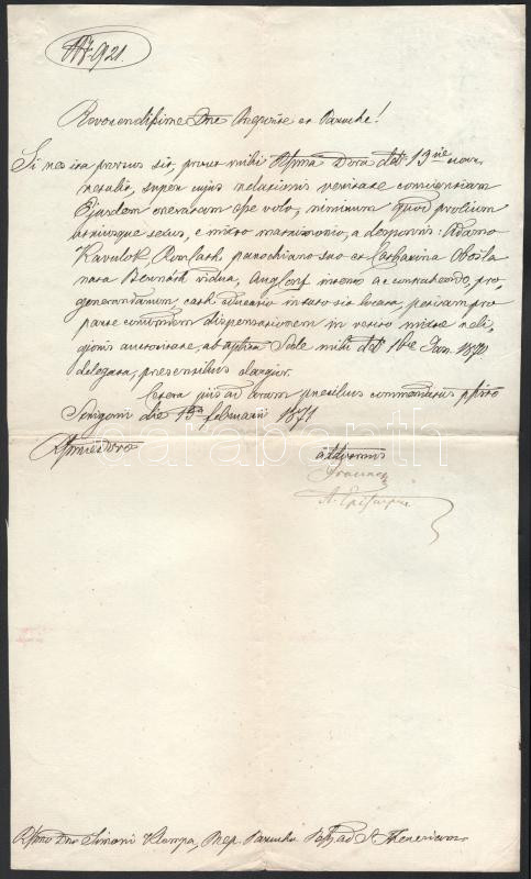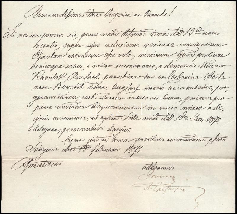Beschreibung: 1871 Simor János esztergomi érsek által aláírt egyházi irat
