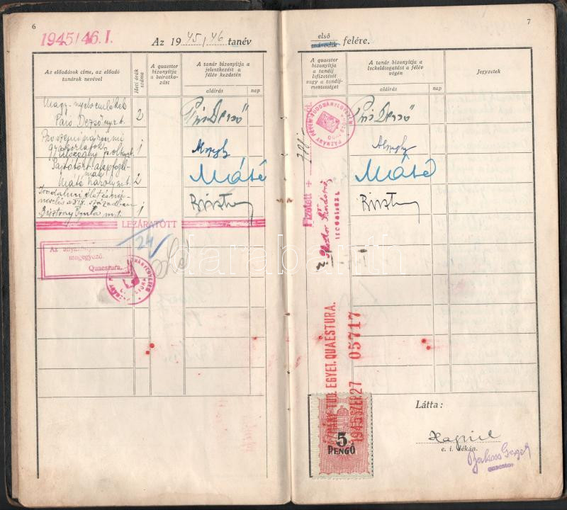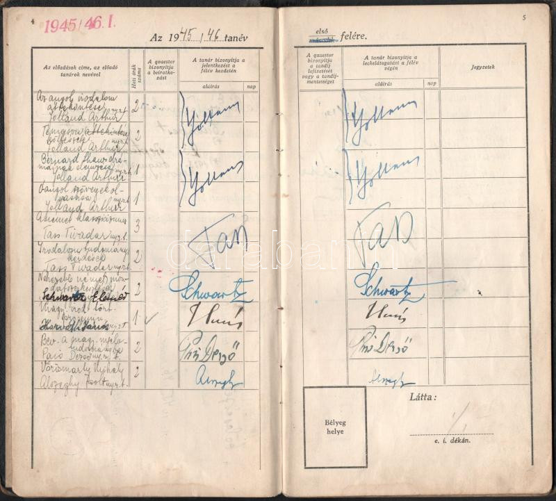 1945 Egyetemi leckekönyv Hajnal, Moór, Pais és mások aláírásával https://www.darabanth.com/de/514-Auktion-Philatelie-Postkarten-Numismatik-Kunstwerke-Bucher-Schreibwaren-Schmuck/515.0/Kunst-Dokumente-andere-Sammelgebiete/Signatur~71/1945-Egyetemi-leckekonyv-Hajnal-Moor-Pais-es-masok-alairasaval~II3478212