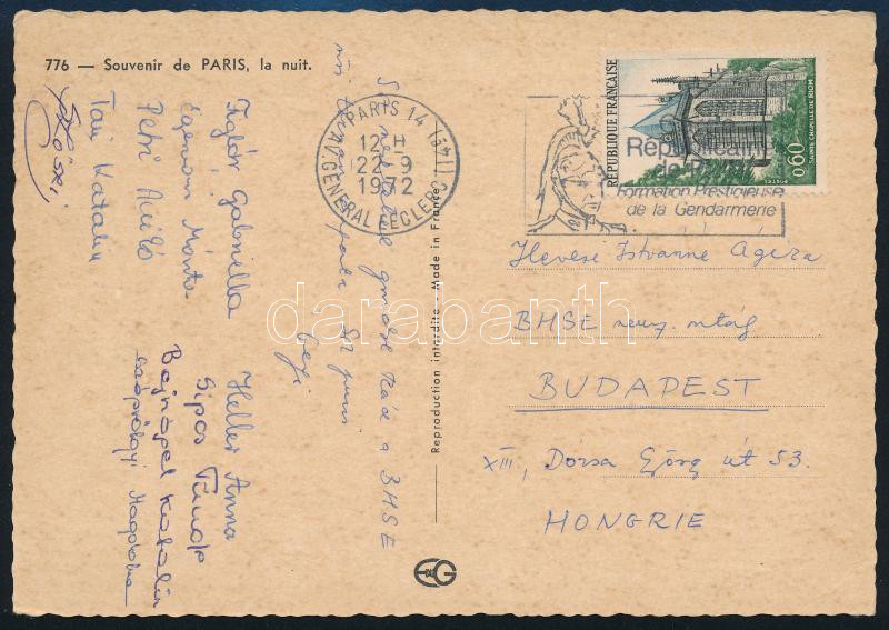 Beschreibung: 1952 A BHSE női tornacsapat tagjainak aláírásai Párizsból Egervári, Pesti, Szépvölgyi, stb. / Hungarian athletes autograph postcard