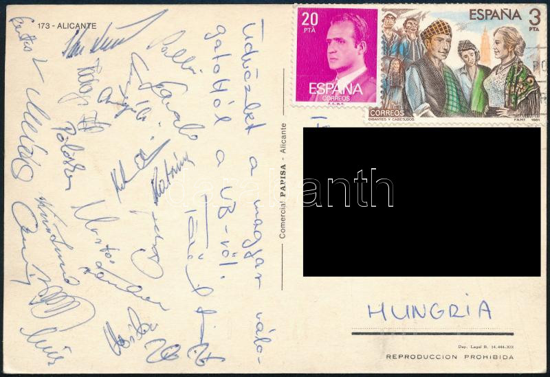 1982 Autograph signed postcard of the Hungarian football team from Spain, the football World Cup 1982