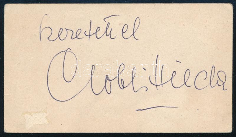 Gobbi Hilda (1913-1988) színésznő aláírása névjegykártyáján https://www.darabanth.com/de/514-Auktion-Philatelie-Postkarten-Numismatik-Kunstwerke-Bucher-Schreibwaren-Schmuck/515.0/Kunst-Dokumente-andere-Sammelgebiete/Signatur~71/Gobbi-Hilda-1913-1988-szineszno-alairasa-nevjegykartyajan~II3478102