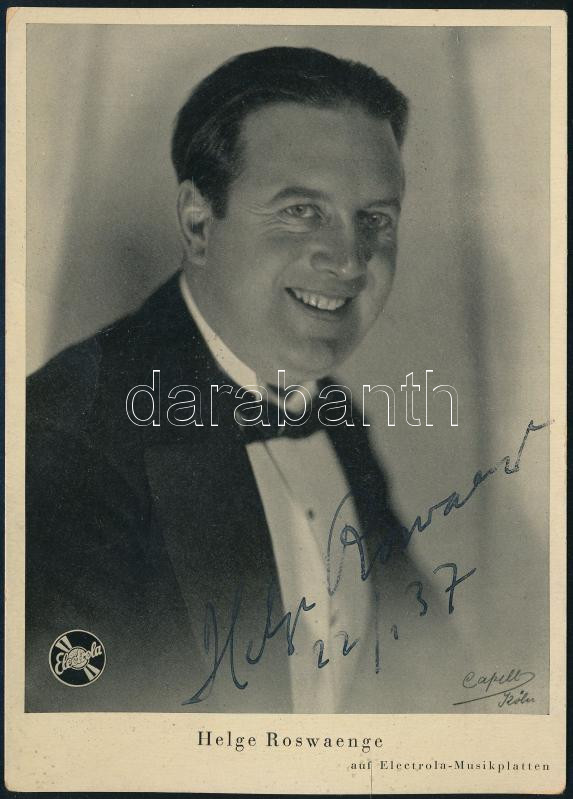 Helge Rosvaenge (1897-1972) dán származású, Németországban és Ausztriában működött operaénekes (tenor) autográf aláírása őt ábrázoló képeslapon, 15x10,5 cm / Autograph signed postcard of Helge Rosvaenge (1897-1972) Danish-born operatic tenor