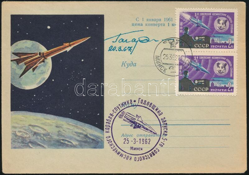 Jurij Alekszejevics Gagarin (1934-1968) szovjet űrhajós autográf aláírása alkalmi borítékon / Autograph signature of Yuriy Alekseyevich Gagarin (1934-1968) Soviet astronaut on special cover