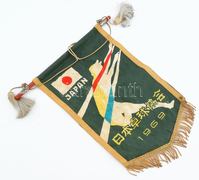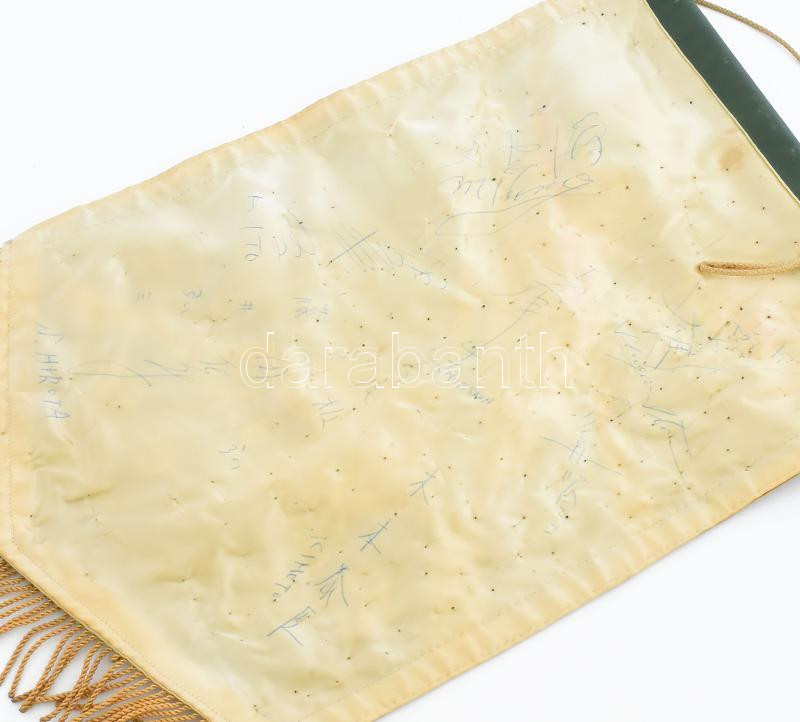 Sportzászló, 1969 Japán, a japán csapat tagjainak aláírásával, m: 41 c... https://www.darabanth.com/de/514-Auktion-Philatelie-Postkarten-Numismatik-Kunstwerke-Bucher-Schreibwaren-Schmuck/515.0/Kunst-Dokumente-andere-Sammelgebiete/Signatur~71/Sportzaszlo-1969-Japan-a-japan-csapat-tagjainak-alairasaval-m-41-cm~II3153704