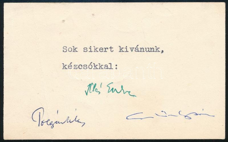 Beschreibung: cca 1960 Illés Endre (1902-1986) író és mások által aláírt üdvözlőkártya