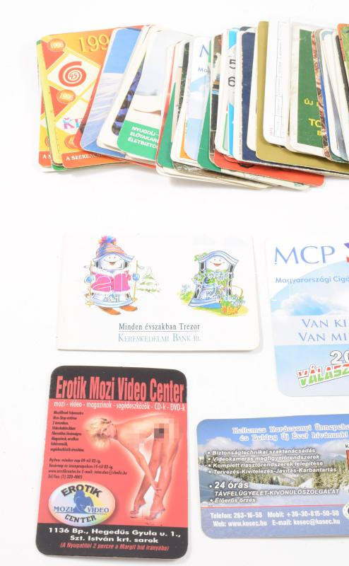 142 db kártyanaptár az 1970-es évektől napjainkig https://www.darabanth.com/de/514-Auktion-Philatelie-Postkarten-Numismatik-Kunstwerke-Bucher-Schreibwaren-Schmuck/515.0/Kunst-Dokumente-andere-Sammelgebiete/Werbungen~73/142-db-kartyanaptar-az-1970-es-evektol-napjainkig~II3483208