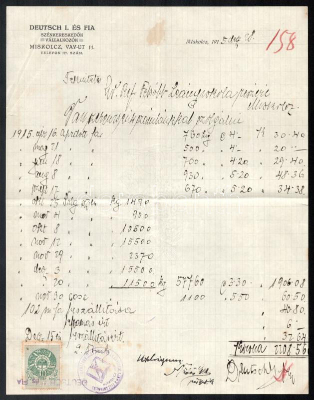 1930 Miskolc Deutch I. szénkereskedő fejléces számla https://www.darabanth.com/de/514-Auktion-Philatelie-Postkarten-Numismatik-Kunstwerke-Bucher-Schreibwaren-Schmuck/515.0/Kunst-Dokumente-andere-Sammelgebiete/Werbungen~73/1930-Miskolc-Deutch-I-szenkereskedo-fejleces-szamla~II3250042