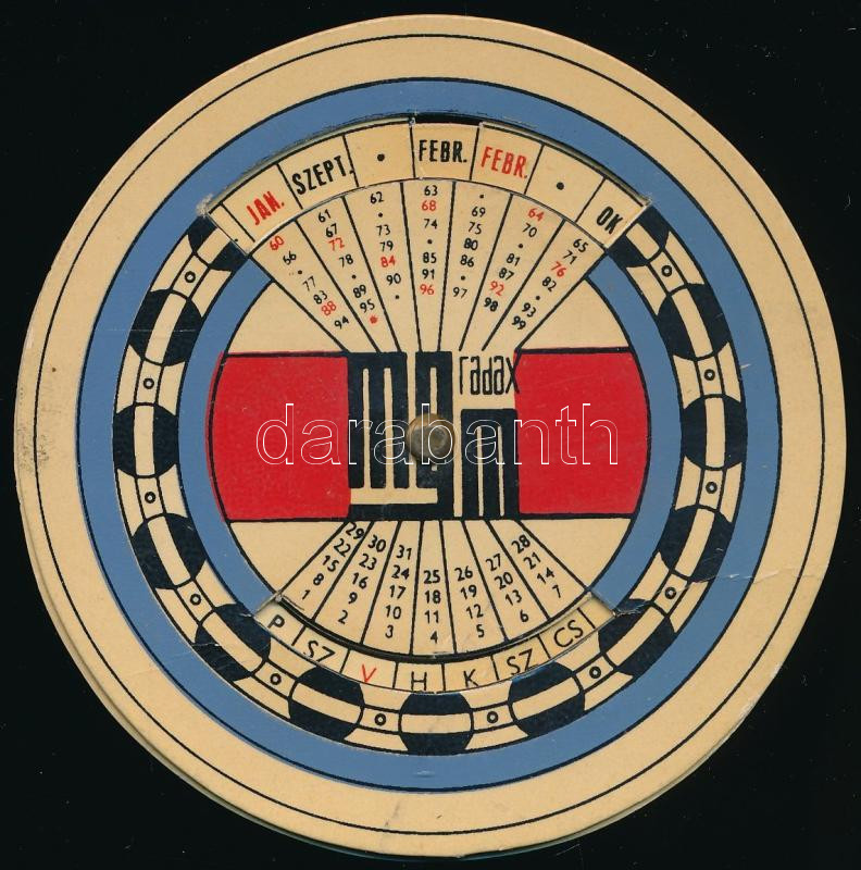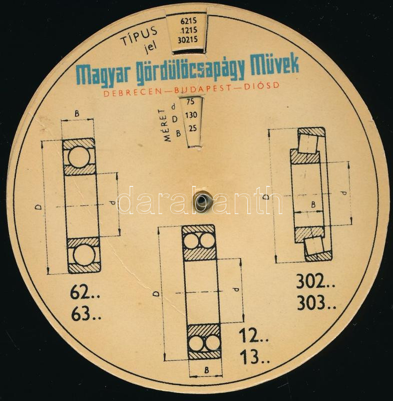Beschreibung: Magyar Gördülőcsapágy Művek forgatható kerek reklámlap