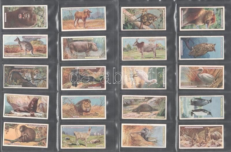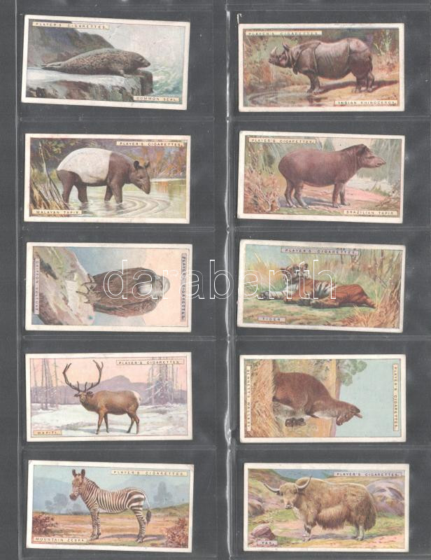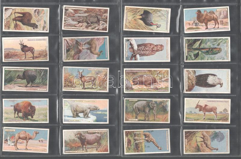 Player's Cigarettes brit cigaretta-gyűjtőkártyák, 50 db-os komplett sorozat ("Természetrajz" - állatok), albumlapokon / British cigarette cards, complete series of 50 ("Natural History" - Animals), in album sheets