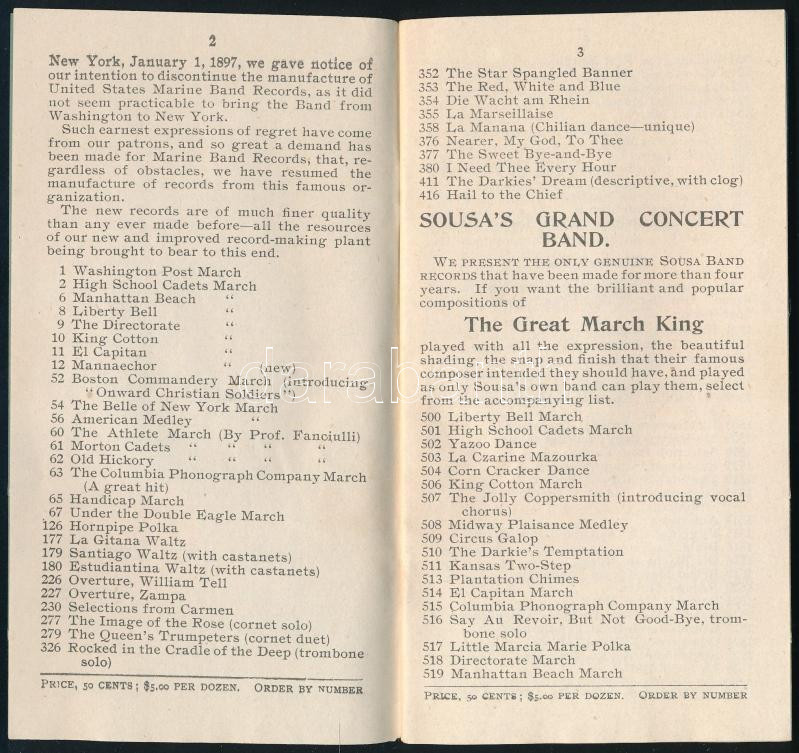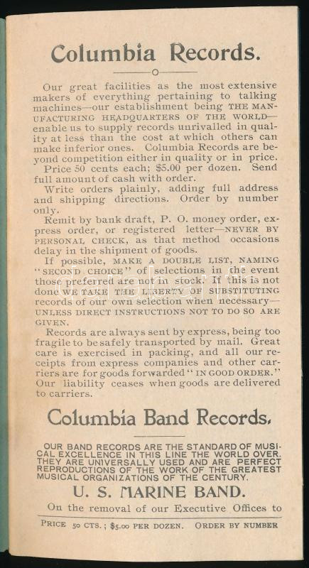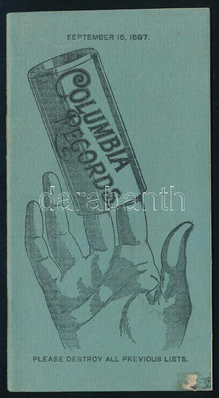 ca 1900 Columbia records fonográf tekercs katalógus 36p. 15 cm https://www.darabanth.com/de/514-Auktion-Philatelie-Postkarten-Numismatik-Kunstwerke-Bucher-Schreibwaren-Schmuck/515.0/Kunst-Dokumente-andere-Sammelgebiete/Werbungen~73/ca-1900-Columbia-records-fonograf-tekercs-katalogus-36p-15-cm~II3461748