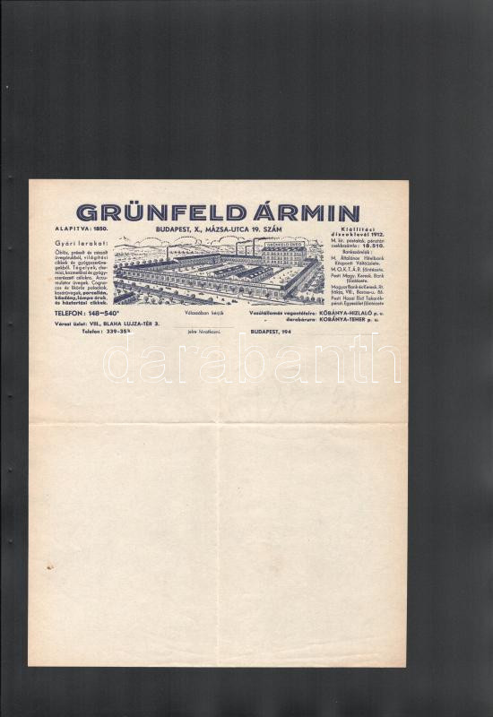 ca 1940 Grünfeld Ármin üvegáru gyár fejléces számla https://www.darabanth.com/de/514-Auktion-Philatelie-Postkarten-Numismatik-Kunstwerke-Bucher-Schreibwaren-Schmuck/515.0/Kunst-Dokumente-andere-Sammelgebiete/Werbungen~73/ca-1940-Grunfeld-Armin-uvegaru-gyar-fejleces-szamla~II3464962