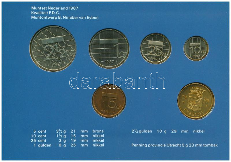 Hollandia 1987. 5c-2 1/2G (5xklf) forgalmi sor + "Rijks" eml... https://www.darabanth.com/de/514-Auktion-Philatelie-Postkarten-Numismatik-Kunstwerke-Bucher-Schreibwaren-Schmuck/515.0/Numismatik/Auslandische-Kursmunzsatze~1318/Hollandia-1987-5c-2-12G-5xklf-forgalmi-sor-plus-3Cem3ERijks3Cem3E-emlekerem-karton-disztokban-TU~II3402679