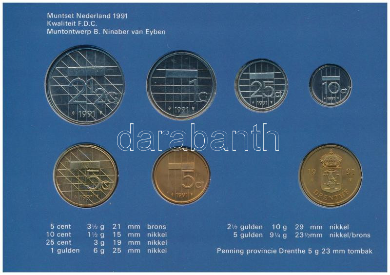 Hollandia 1991. 5c-5G (6xklf) + "Drenthe" emlékérem forgalmi... https://www.darabanth.com/de/514-Auktion-Philatelie-Postkarten-Numismatik-Kunstwerke-Bucher-Schreibwaren-Schmuck/515.0/Numismatik/Auslandische-Kursmunzsatze~1318/Hollandia-1991-5c-5G-6xklf-plus-Drenthe-emlekerem-forgalmi-sor-karton-disztokban-TUNC-Netherla~II3402684