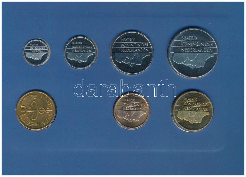 Beschreibung: Hollandia 1991. 5c-5G (6xklf) + "Drenthe" emlékérem forgalmi sor karton dísztokban T:UNC Netherlands 1991. 5 Cents - 5 Gulden (6xdiff) + "Drenthe" commemorative coin, coin set in cardboard case C:UNC