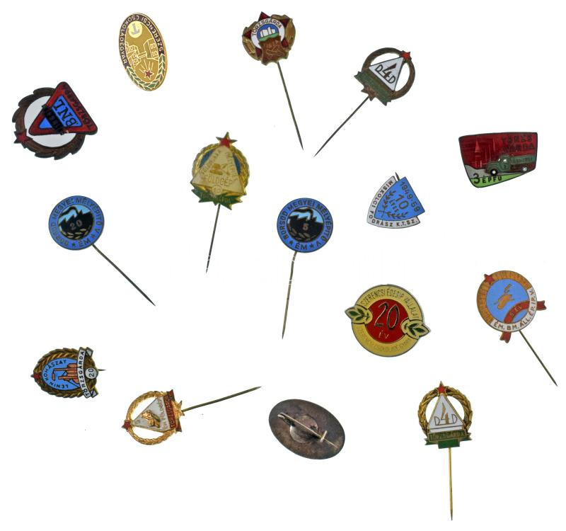 1960-1980 k. 15xklf "Törzsgárda" jelvényből álló tétel, közte zománcozott darabok, benne: Lenin Kohászati Művek (LKM), D4D, Állami Építőipari Vállalat, Borsod Megyei Mélyépítő Vállalat, Földgép, Szerencsi Csokoládégyár, ÉPFÜ, Tisza, BNL, Miskolci Fodrász KTSZ T:vegyes