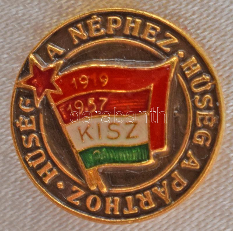 1970. "KISZ - Hűség a Néphez Hűség a Párthoz" műgyantás kitü... https://www.darabanth.com/de/514-Auktion-Philatelie-Postkarten-Numismatik-Kunstwerke-Bucher-Schreibwaren-Schmuck/515.0/Numismatik/Faleristik-Auszeichnungen-Medaillen-Orden~1322/1970-3Cem3EKISZ-Huseg-a-Nephez-Huseg-a-Parthoz3Cem3E-mugyantas-kituntetes-mellszalagon-~II3458438