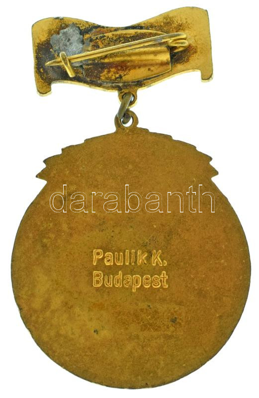 DN (1930 k.) "OMDSZ (Országos Magyar Dalos Szövetség) - Az Érdem Jutalmául - XL" 40. évfordulós zománcozott, aranyozott bronz díszjelvény, hátoldalán "Paulik K. Budapest" gyártói jelzéssel (50x31mm) T:AU