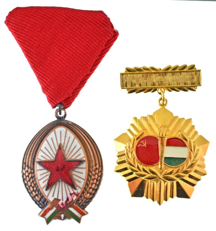 DN (1970 k) "Magyar-Szovjet Baráti Társaság" műgyantás aranyozott jelvény + 1985. "A Munka Érdemrend bronz fokozata" zománcozott bronz kitüntetés mellszalagon T:AU,XF