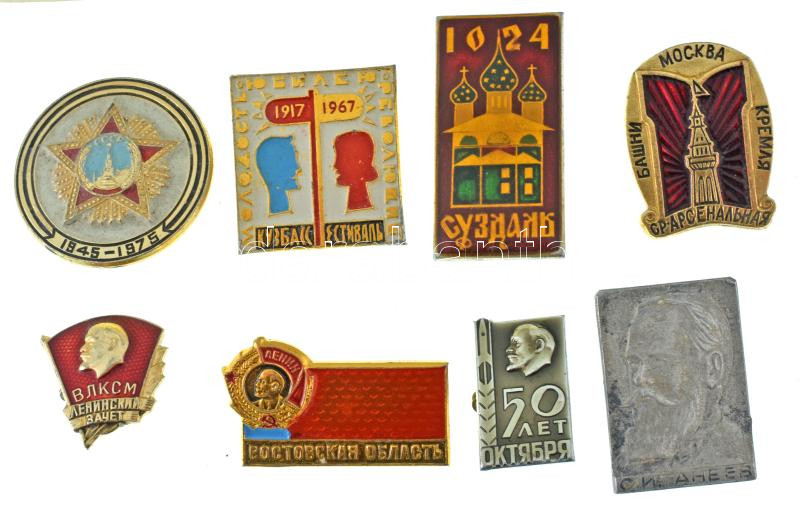 Vegyes, 8db-os szovjet szocialista jelvény / kitűző T:AU-VF