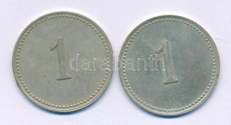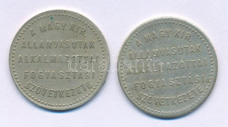 Beschreibung: 1900 k. "A Magyar Királyi Államvasutak Alkalmazottai Fogyasztási Szövetkezete " 1 Korona (?) értékű bárcája (2x) T:XF