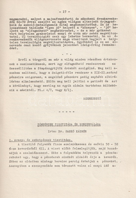 A tartalomból: Bánki Vajk Emil: Olasz emlékérem az 1848-as szabadságharc 15. évfordulójára -- Pál Imre: A római császárkor görög koloniális vereteinek ismertetése, VII. folytatás -- Gács András: Porcelán érmek és pénzek -- Bánki Vajk Emil: Emlékpénzek 1865-1869-ből (képmelléklettel) -- Szigeti István: Az érmek állapotának leírására szolgáló rendszer -- Saskó Kázmér: Fémpénzek tisztítása és konzerválása.