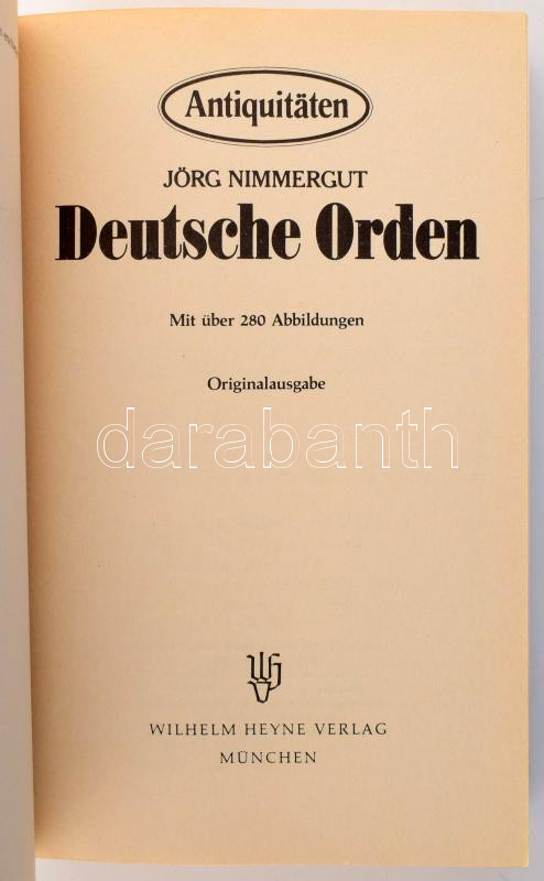 Nimmergut, Jörg: Deutsche Orden. Mit über 280 Abbildungen. Antiquitäten. München, 1982.,Wilhelm Heyne. Német nyelven. Fekete-fehér képanyaggal illusztrált. Kiadói papírkötés.
