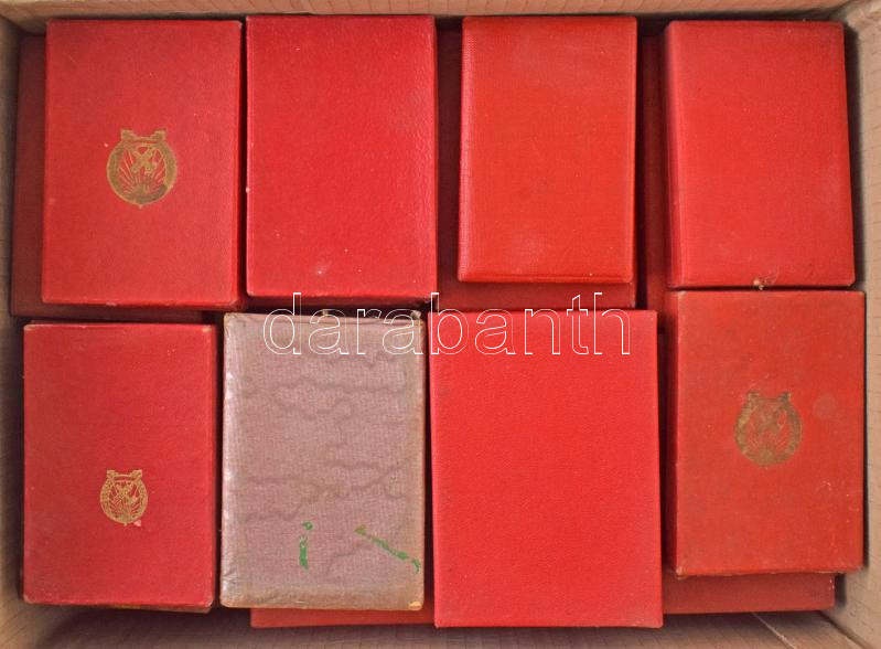 Beschreibung: 31db-os szocializmus korabeli kitüntetés tok-tétel, benne több Rákosi-címeres tok T:vegyes közte sérültek
