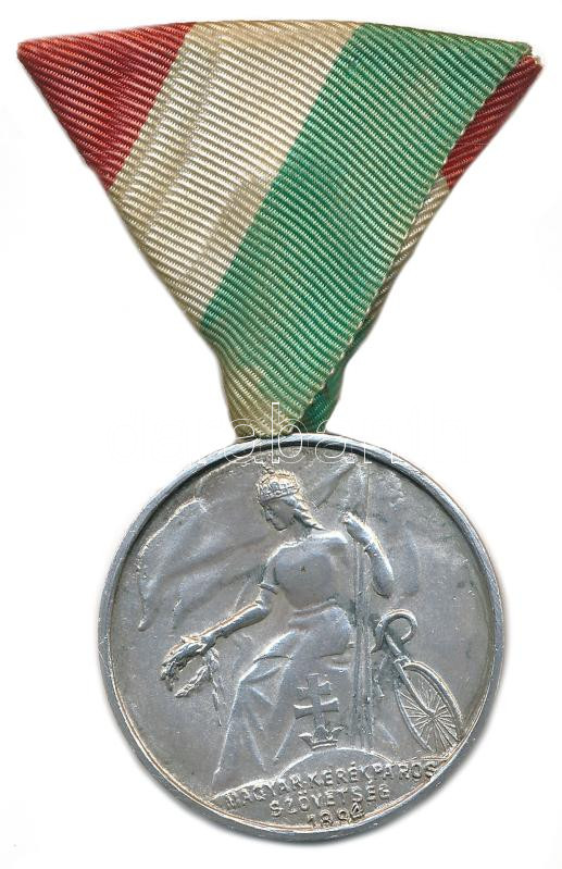 ~1910. "Magyar Kerékpáros Szövetség" jelzetlen Ag díjérem mellszalagon, "HP" beütéssel (39mm) T:AU,XF