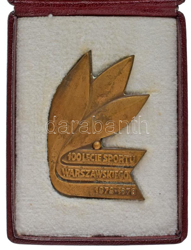 Lengyelország 1978. "100 lecie sportu Warszawskiego (A varsói sport 100. évfordulója)" bronz emlékplakett eredeti tokban (35x51mm) T:AU