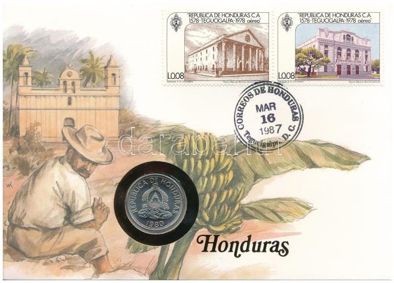 Honduras 1980. 10 Centavos Cu-Ni in envelope with stamp, with German description C:UNC