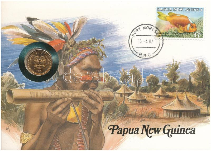 Pápua Új-Guinea 1987. 2t Cu-Zn felbélyegzett borítékban, bélyegzéssel, német nyelvű leírással T:UNC patina