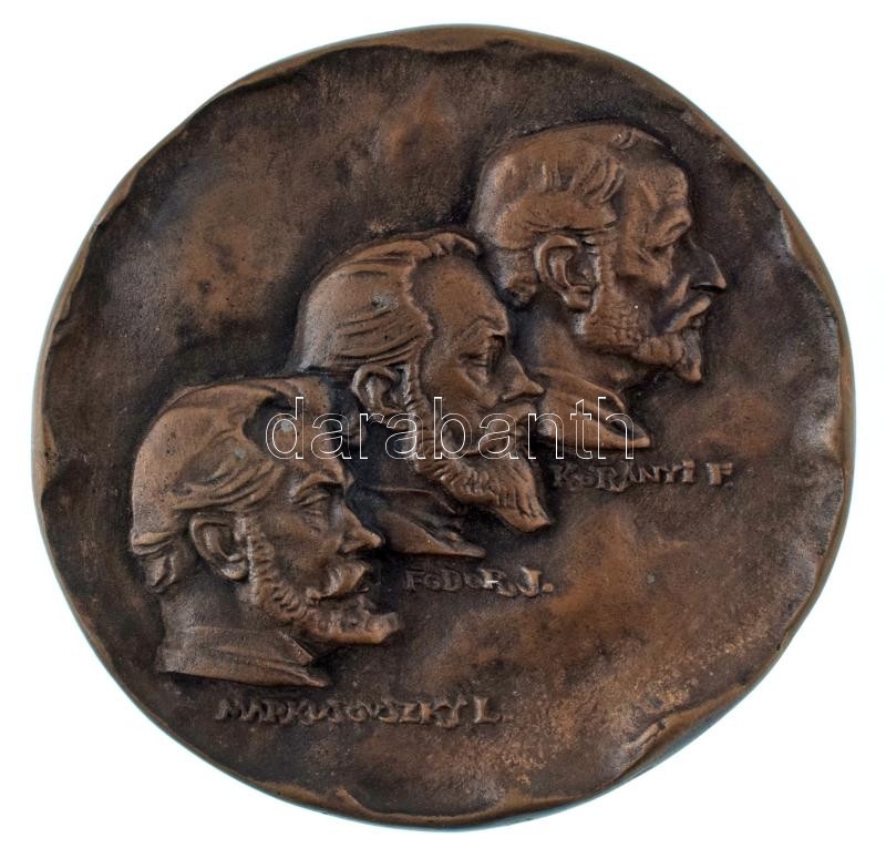 Madarassy Walter (1909-1994) DN (~1983.) "Markusovszky László, Fodor József, Korányi Ferenc / Magyar Orvostovábbképzés 1883." kétoldalas, öntött bronz plakett (~110mm) T:AU patina