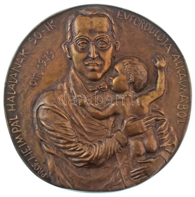 Osváth Mária (1921-1998) 1979. "Prof Heim Pál halálának 50-ik évfordulója alkalmából" egyoldalas, öntött bronz plakett (~126mm) T:AU patina