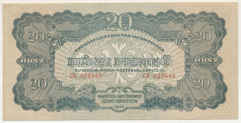 1944. 20P "A Vöröshadsereg Parancsnoksága", "CA 672649&... https://www.darabanth.com/de/514-Auktion-Philatelie-Postkarten-Numismatik-Kunstwerke-Bucher-Schreibwaren-Schmuck/515.0/Numismatik/Ungarische-Banknoten~1309/1944-20P-A-Voroshadsereg-Parancsnoksaga-CA-672649-TAU-sarokhajlasok3Cbr-3E-Adamo-P45~II3298271