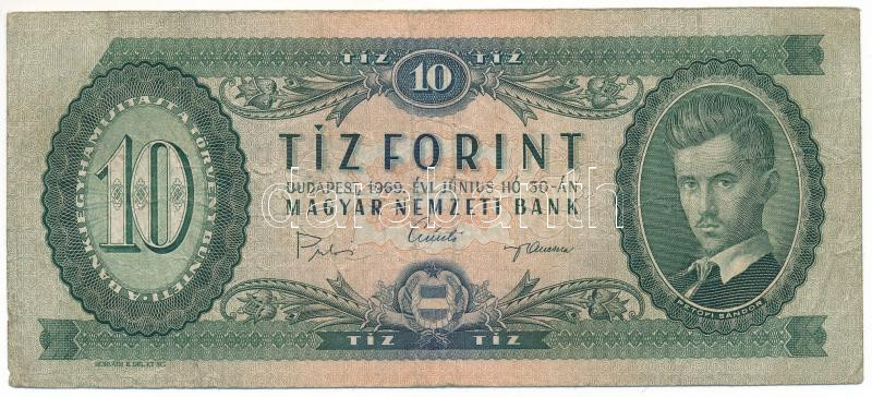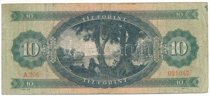 1969. 10Ft "A 206 021047" nyomdahibás bankjegy T:F