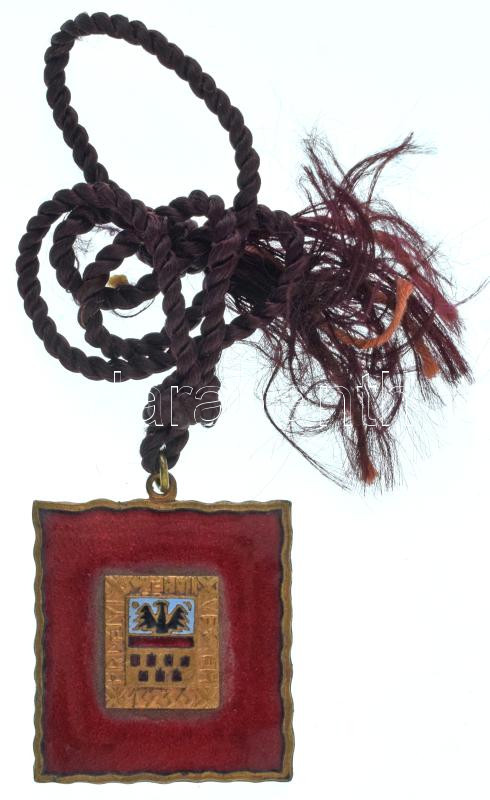 Beschreibung: 1936. "Erdélyi Szépmíves Céh " zománcozott szögletes bronz medál zsinóron (33x30mm) T:AU