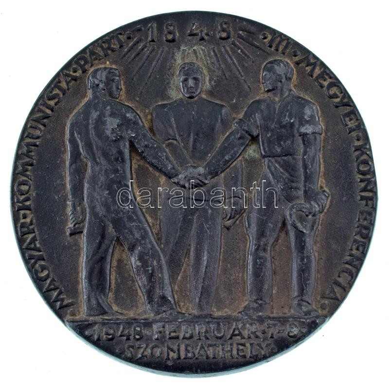 1948. "Magyar Kommunista Párt - III. Megyei Konferencia - 1948. február 7-8. Szombathely" egyoldalas, öntött fém plakett (109mm) T:XF