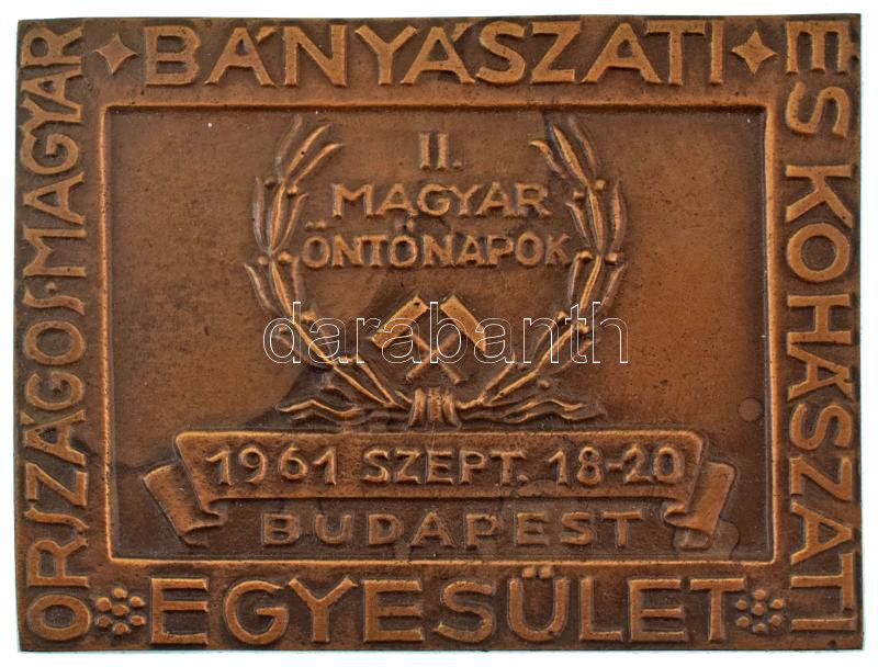 1961. "Országos Magyar Bányászati és Kohászati Egyesület - II. Magyar Öntőnapok 1961. szept. 18-20 Budapest" bronz plakett (62x82mm) T:AU