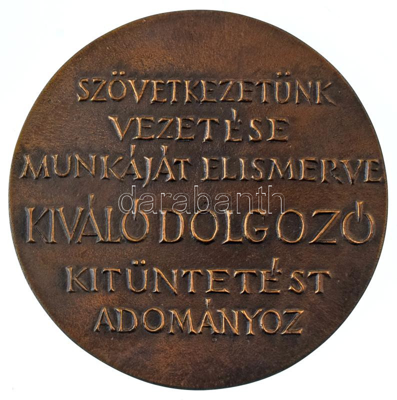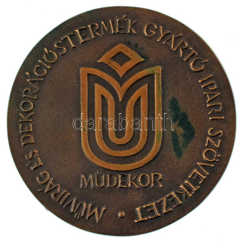 1970-1980 k. "Művirág és Dekorációstermék Gyártó Ipari Szövetkezet - MŰDEKOR / Szövetkezetünk vezetése munkáját elismerve Kiváló Dolgozó kitüntetést adományoz" kétoldalas, öntött bronz plakett (87mm) T:AU,XF patina
