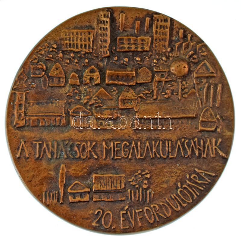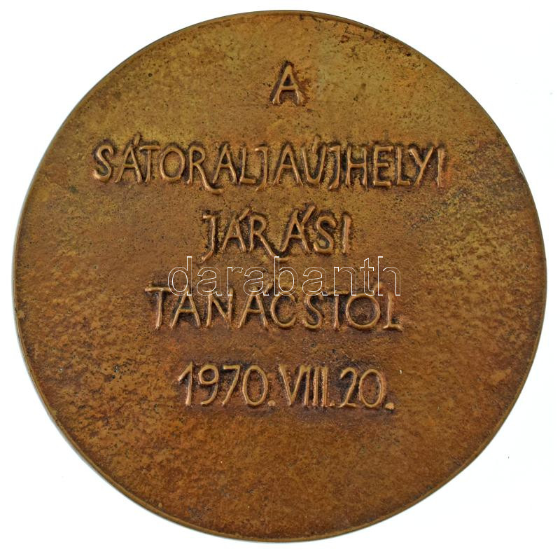 1970. "A tanácsok megalakulásának 20. évfordulójára / A sátoraljaújhelyi Járási Tanácstól 1970.VIII.20." kétoldalas öntött bronz emlékplakett T:XF