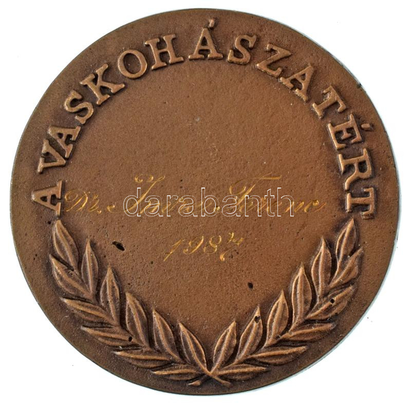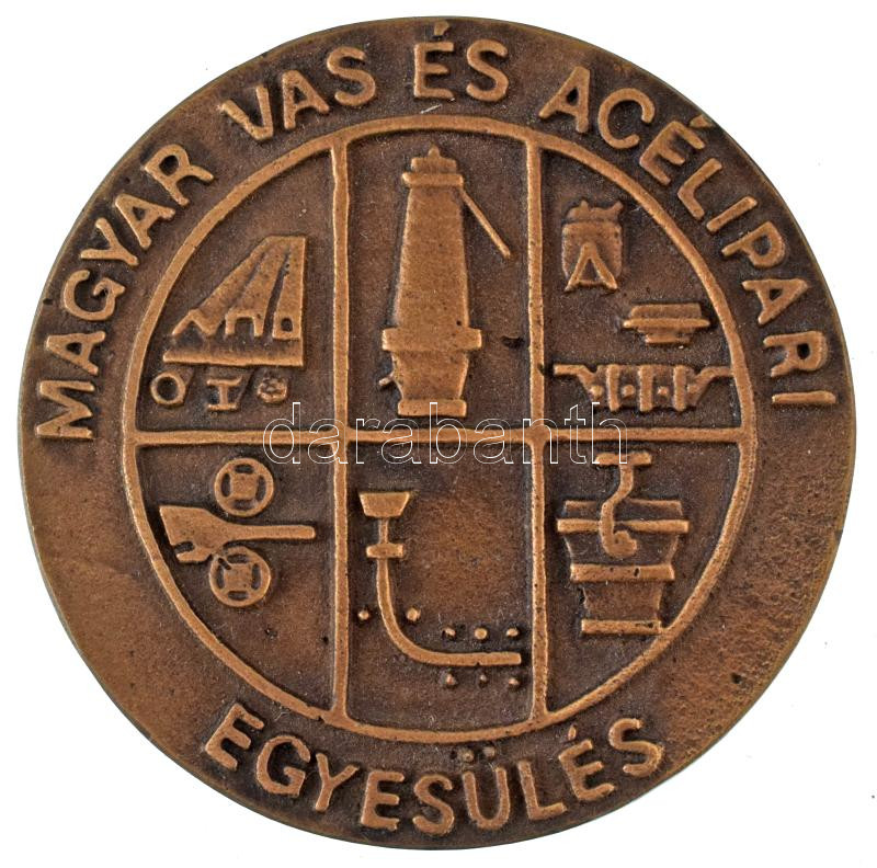 1987. "Magyar Vas és Acélipari Egyesülés / A Vaskohászatért" kétoldalas, öntött bronz emlékérem, a hátoldalán névre szóló gravírozással (89mm) T:AU